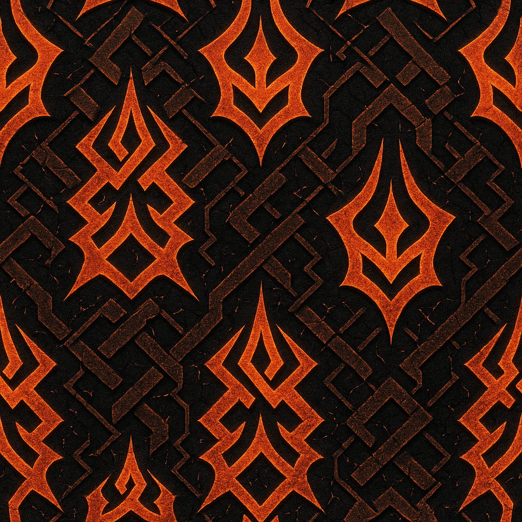 • Sharp interlocking flame-rune geometry