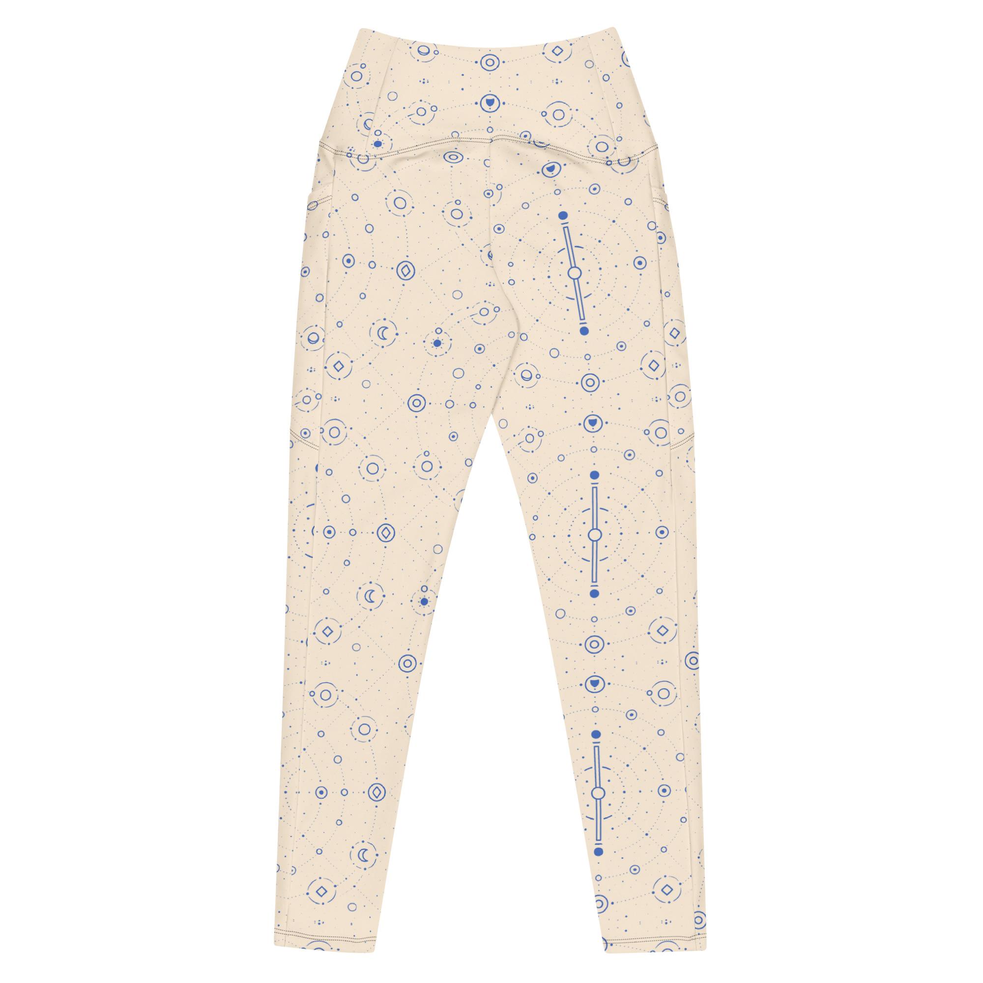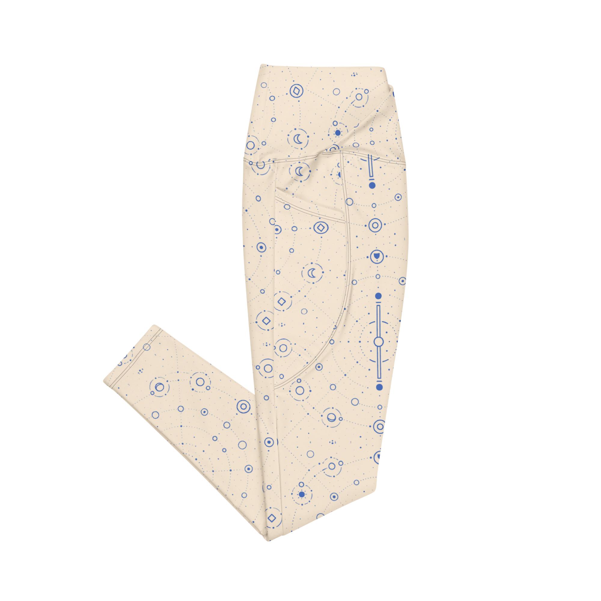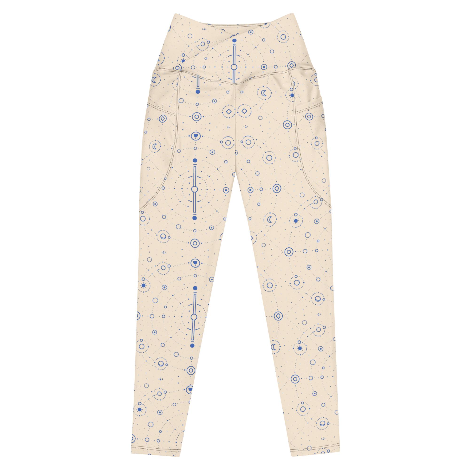 Onegodian Galaxy: Thirteen Worlds Orbit Chain™ – Crossover leggings with pockets – Cream & Navy