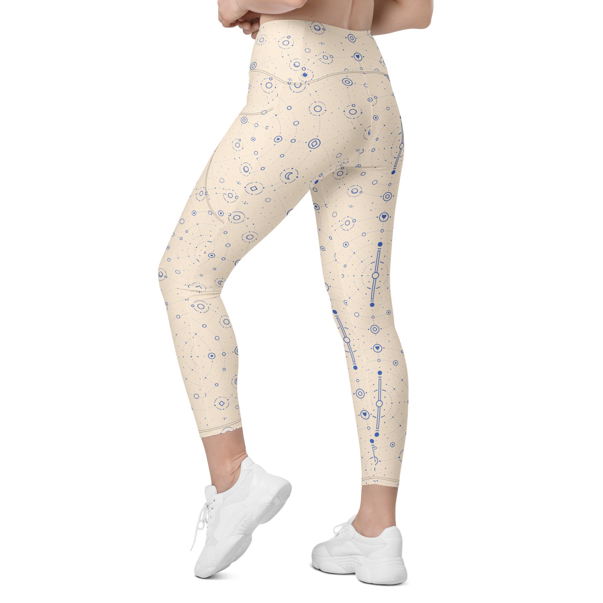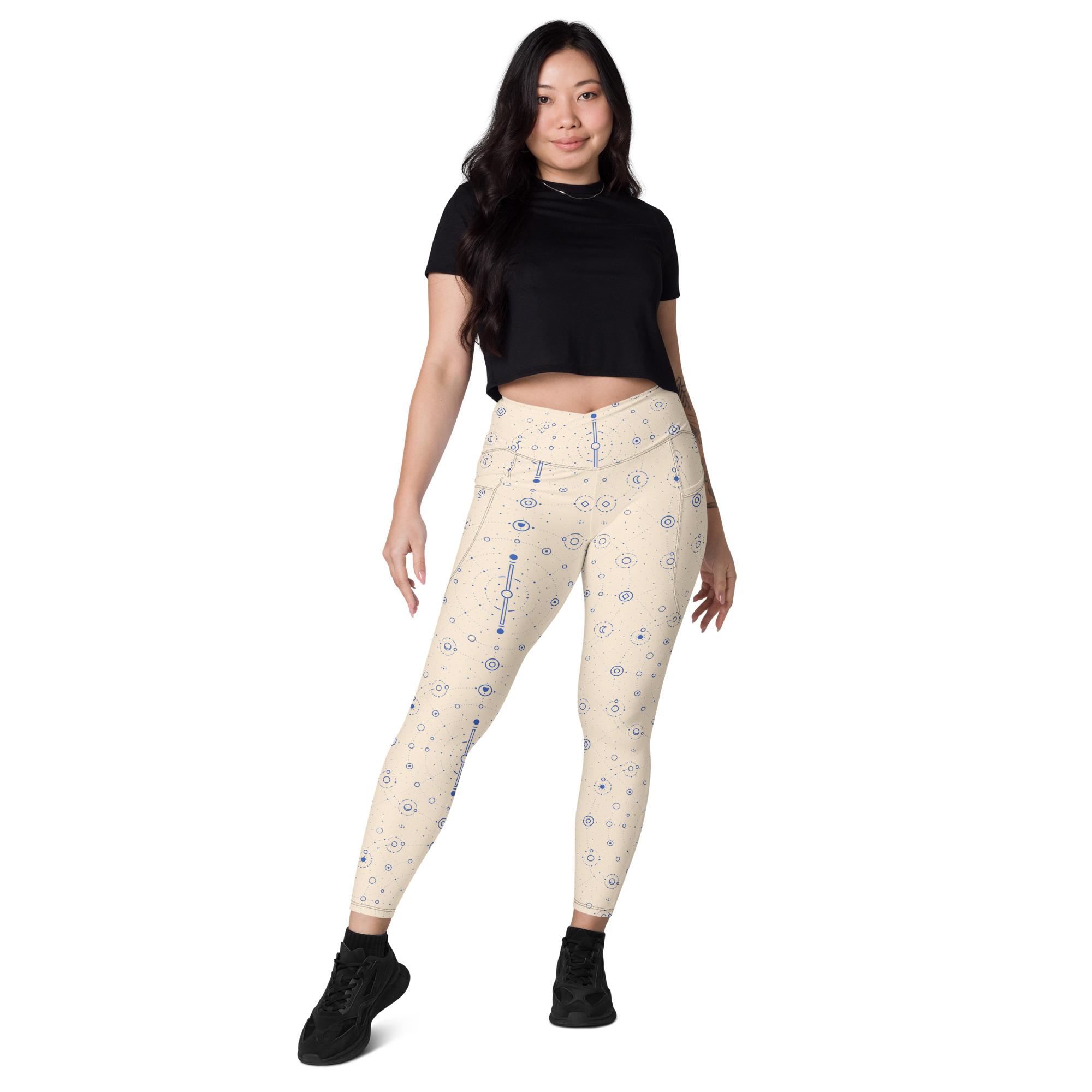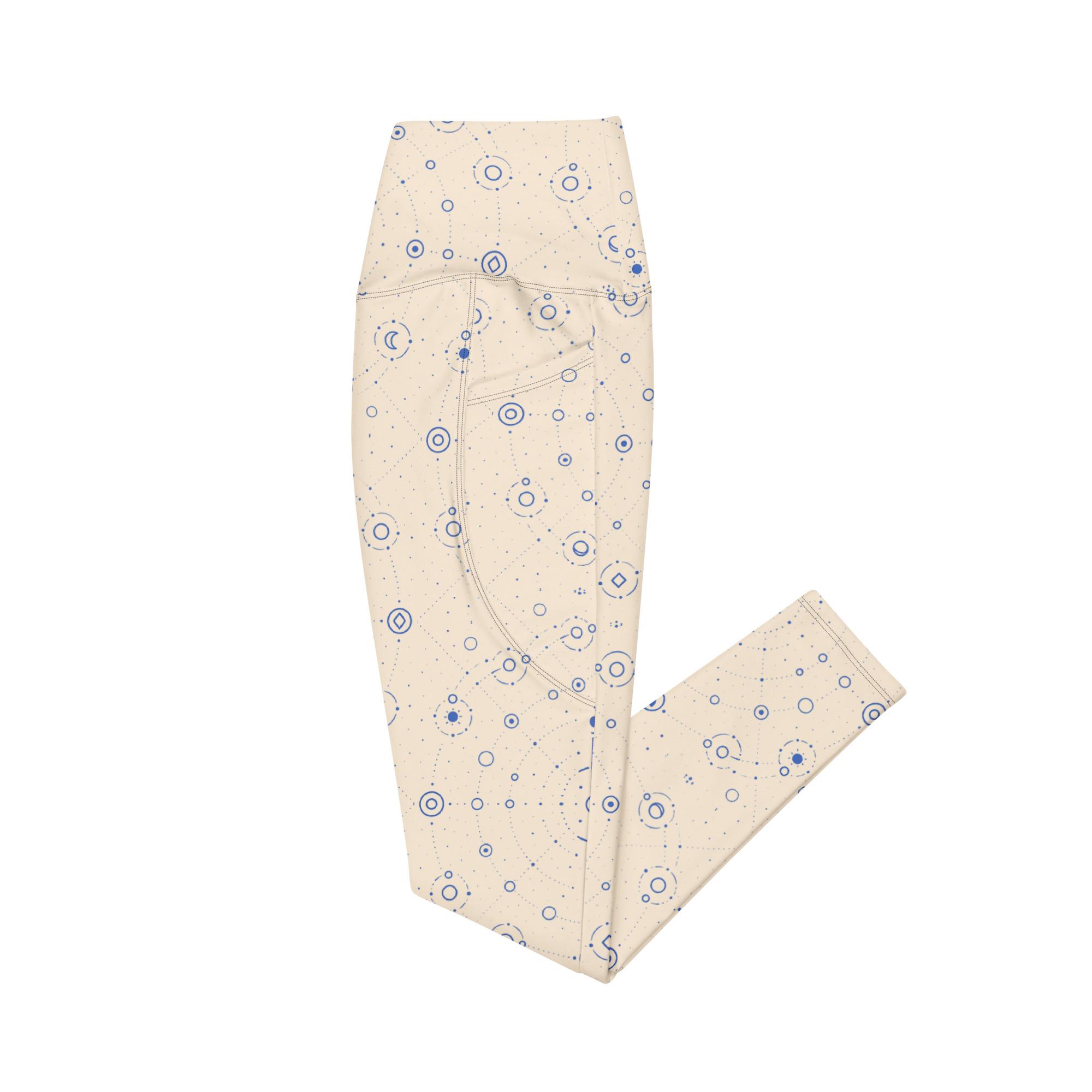 Onegodian Galaxy: Thirteen Worlds Orbit Chain™ – Crossover leggings with pockets – Cream & Navy